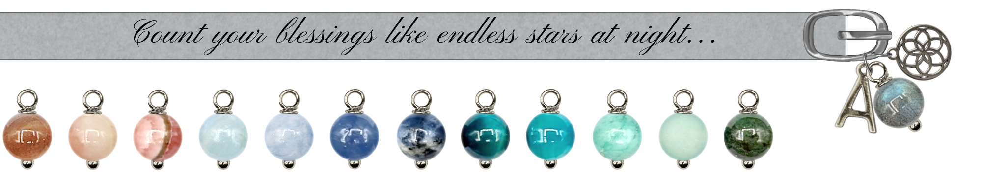Optional add-ons: Stainless steel charms and natural stone bead pendants.